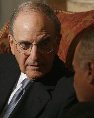 George Mitchell, US President Barack Obama's new Middle East envoy, listens to Egyptian Foreign Minister Ahmed Abul Gheit during their meeting in Cairo January 27, 2009. The United States' Middle East envoy arrived in Cairo on Tuesday with orders from President Barack Obama to "start by listening" as the new administration tries to revive the Israeli-Palestinian peace process. [Agencies]