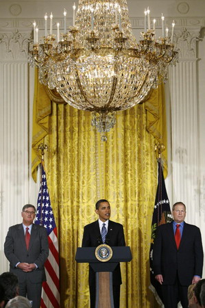 US President Barack Obama speaks about the economy during an event in the East Room of the White House in Washington January 28, 2009. The Democratic-controlled House of Representatives approved a historically huge $819 billion stimulus bill Wednesday night with spending increases and tax cuts at the heart of the young administration's plan to revive a badly ailing economy.[Agencies]