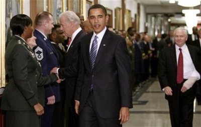 Obama pledged during his campaign to order immediately the withdrawal of all combat troops from Iraq by May 2010. He said he would call in the Joint Chiefs and tell them so on his first day in office, a bit of campaign hyperbole that has evolved in practice into a series of consultations with military leaders, including commanders in Iraq and Afghanistan. The new US president also has said he would adjust his timeline if it would risk the safety of US troops remaining behind to train Iraqis and fight al-Qaida or if it would cause backsliding in Iraqi stability. At Wednesday's meeting, the challenges facing military commanders closing down one war and widening another were discussed at length, said a defense official who was there. There was no explicit discussion of timelines, the official said, either Obama's or alternatives quietly preferred by some military leaders. "It was not that kind of meeting," said the official, who spoke on condition of anonymity to describe what he called a candid and far-ranging give-and-take. Obama remains committed to closing down the Iraq war, which he has called a mistake, and shifting military and other resources to Afghanistan. At some point soon, Obama will have to sign off on specific troops movements in both places. The White House said earlier Wednesday that Obama's review of how to wind down the war in Iraq will conclude soon, and Defense Secretary Robert Gates and Adm. Mike Mullen, chairman of the Joint Chiefs, said Tuesday that they hope to present Obama with a menu of options quickly. Obama peppered the chiefs with questions and "was not strictly in receive mode" during the 90-minute meeting, said Pentagon spokesman Geoff Morrell. "This was a conversation at a much higher elevation about global threats the United States faces, about in particular the situations in Iraq and Afghanistan, and the president was, of course, keenly interested in hearing from the chiefs about the health of their forces," Morrell said. "And each of the chiefs offered him a candid assessment of how they're doing." Specific troop deployments to Afghanistan and the detention center at Guantanamo Bay, Cuba, were not discussed at the meeting, Morrell said. On Iraq, it seems increasingly likely that Obama will adopt a slower calendar in deference to civilian and military advisers who fear that security would erode with a fast exit. Obama is taking a careful step-by-step approach to making one of the most watched decisions of his young presidency, and he has left himself leeway to step back from a campaign pledge that struck some military leaders as rash or arbitrary. At one point, before they were part of the Obama administration, both Mullen and Gates were in that category. The deliberate pace heeds the advice of Gates, the only member of Republican President George W. Bush's war Cabinet whom Obama asked to stay on. Gates has said he wanted to ensure that Obama heard from a long list of military leaders. |