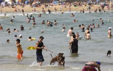 People cool off in the water at a beach in Melbourne January 31, 2009. Melbourne recorded its hottest ever three-day heatwave on Friday, after the temperature hit 43.8 degrees Celsius (110.84 Fahrenheit), the third day above 43 Celsius. [Agencies]