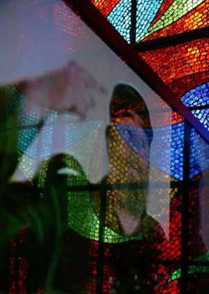 The video image of Fidel Castro is reflected on the glass during a photo exhibition marking the 50th anniversary of Cuban revolution, in Moscow, Russia, February 1, 2009. [Xinhua]