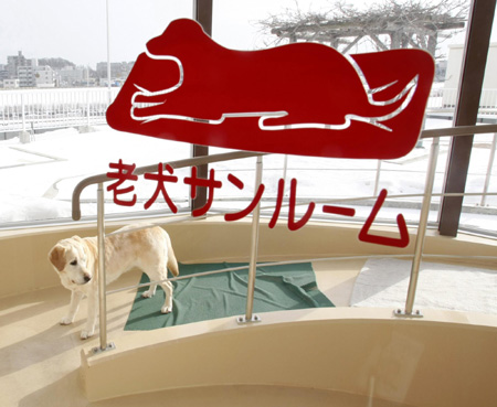 A retired guide dog walks in a sun-bathing room at an asylum for retired guide dogs in Sapporo, northern Japan, February 2, 2009. Most guide dogs over 12 years old are retired from service due to their declining physical strength. More than 200 retired guide dogs have lived their remaining years in the facility since the Hokkaido guide dogs association opened the care center in 1978, authorities said. [Agencies]