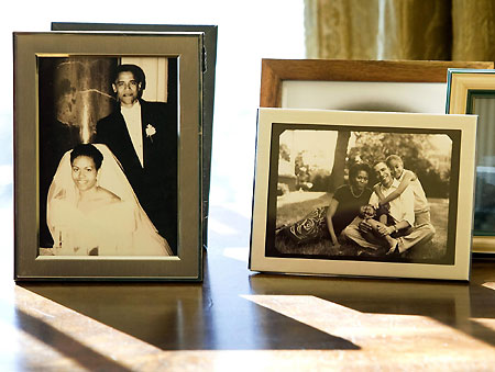 Personal photographs sit behind the desk of US President Barack Obama in the Oval Office of the White House in Washington, February 2, 2009.[Agencies]