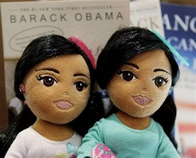 Pictured are the Sweet Sasha, left, and Marvelous Malia dolls made by Ty Inc., the creators of the Beanie Babies at Lamont's gift shop inside the Ritz-Carlton Hotel in Chicago, Wednesday, Jan. 21, 2009. The daughters of US President Barack Obama are the inspiration for the latest in the TyGirlz Collection. [Agencies]