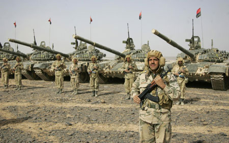 Soldiers stand near their tanks after a military manoeuvre in Yemen's north-central Marib province February 3, 2009. [Agencies]