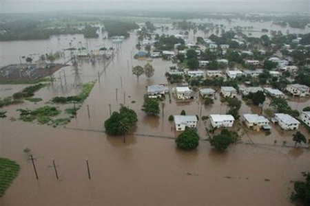 This Herbert River Express photo, February 3, shows the flooded Ingham area between Cairns and townsville in north Queensland. Torrential rain from ex-tropical cyclone Ellie has saturated the north of Queensland with 3,000 homes affected in Ingham, 50 of those inundated. [Agencies]