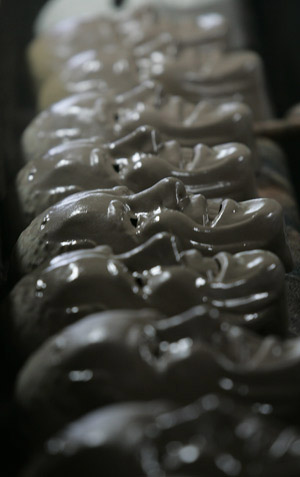 Masks made in the likeness of USPresident Barack Obama lie on an assembly line at a costume factory in a suburb of Rio de Janeiro February 10, 2009. A total of 12,000 Obama masks will be made for the upcoming 'Brazil Carnaval' festival from February 20 to 22, according to the manufacturer. [Agencies]