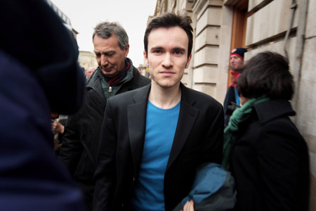 German pathology research student, Martin Jahnke, 27, leaves Cambridge Magistrates court on February 10, 2009 in Cambridge, England. Jahnke threw a shoe at Premier Wen Jiabao during his speech last week at Cambridge University was released on unconditional bail yesterday by a court. [CFP]