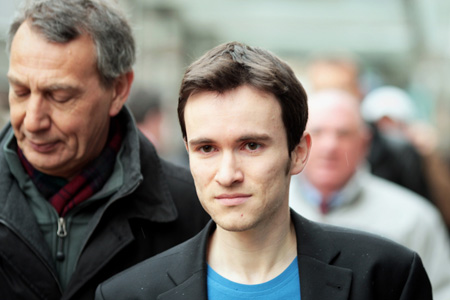 German pathology research student, Martin Jahnke, 27, leaves Cambridge Magistrates court on February 10, 2009 in Cambridge, England. Jahnke threw a shoe at Premier Wen Jiabao during his speech last week at Cambridge University was released on unconditional bail yesterday by a court. [CFP]