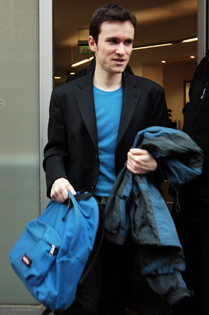 German pathology research student, Martin Jahnke, 27, leaves Cambridge Magistrates court on February 10, 2009 in Cambridge, England. Jahnke threw a shoe at Premier Wen Jiabao during his speech last week at Cambridge University was released on unconditional bail yesterday by a court. [CFP]