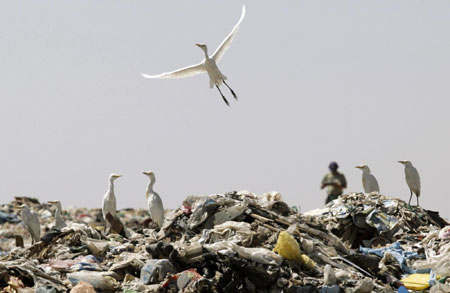 Gaviotas are seen at the Nezahualcoyotl dump site in Mexico City February 6, 2009. [Agencies]