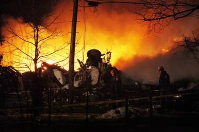 A plane burns after it crashed into a house in Clarence Center, N.Y., Thursday, Feb. 12, 2009. New York state police say it was a 50-passenger commuter plane. [Agencies]