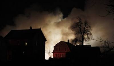 Smoke rises from a burning plane after it crashed into a house in Clarence Center, N.Y., Thursday Feb. 12, 2009. Authorities say it was Continental Airlines Flight 3407 operated by Manassas, Va.-based Colgan Air. [Agencies]
