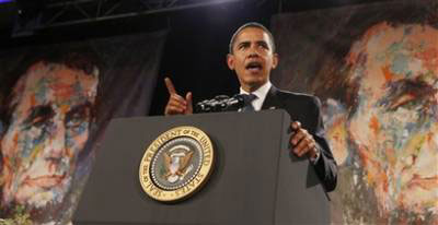 "There are certain things we can only do together," Obama said. "There are certain things only a union can do." Here in the place that Lincoln called home, and from where Obama launched his presidential bid, the new president's speech capped his third event honoring Lincoln's bicentennial. It was a whirlwind day for Obama. He squeezed in economic comments in East Peoria, Ill., and coped with the abrupt withdrawal of another commerce secretary nominee. The stories of Obama and Lincoln have become entwined by history, geography and symbolism. Their paths are viewed as not just their own, but the country's as well -- a lineage from the man who freed the slaves to the first black president in US history. Obama said Lincoln understood that self-reliance was at the core of American life. But Obama said individual liberty is "served, not negated, by a recognition of the common good." The pendulum, Obama said, has swung too far toward a philosophy that says government is the problem -- a notion that it should be dismantled, with tax breaks for the wealthy that might eventually help out everyone. "Such knee-jerk disdain for government -- this constant rejection of any common endeavor -- cannot rebuild our levees or our roads or our bridges," Obama said. His list of collective examples went on: better schools, modern health care, an economy built on clean energy. "Only a nation can do these things," Obama said. "Only by coming together, all of us, and expressing that sense of shared sacrifice and responsibility ... can we do the work that must be done in this country. That is the very definition of being American." Earlier Thursday, back in Washington, Obama celebrated Lincoln's resolve at a ceremony in the stately Rotunda of the US Capitol. And he spent Wednesday evening at a performance at the newly renovated Ford's Theatre, where Lincoln was assassinated in 1865. Like Lincoln, Obama is a skinny lawyer who rose from obscurity and served briefly in the Illinois legislature before leaping to national office at a time of burgeoning crisis. Still, the White House is mindful to limit the comparison, whatever the parallels. Lincoln is a monumental figure who fought to preserve the union, presided over the enormously costly Civil War and signed the Emancipation Proclamation. Obama has been president for less than a month. "This president isn't seeking to compare himself with I think what many believe is one of the two or three greatest presidents that this country's ever had," White House press secretary Robert Gibbs said. That Obama often operates in Lincoln's shadow is largely a matter of choice. He admires the 16th president, reads his language, quotes his speeches and draws on him for inspiration. |