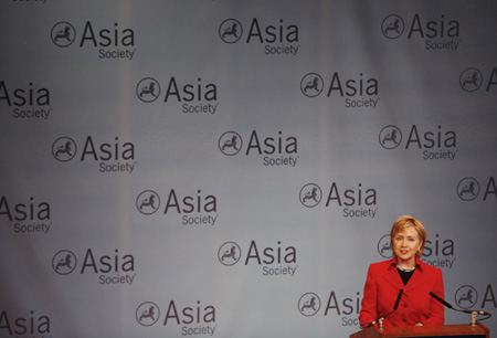 US Secretary of State Hillary Clinton speaks to an audience at the Asia Society in New York February 13, 2009. [Agencies]