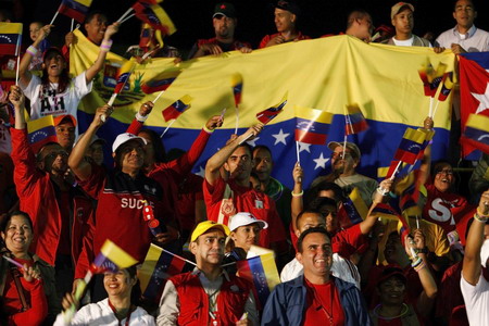 Supporters of Venezuela's President Hugo Chavez celebrate outside Miraflores Palace after the electoral court announced a victory for Chavez in a national referendum to decide whether to allow him to stay in power for as long as he keeps winning elections, February 15, 2009. [Agencies]
