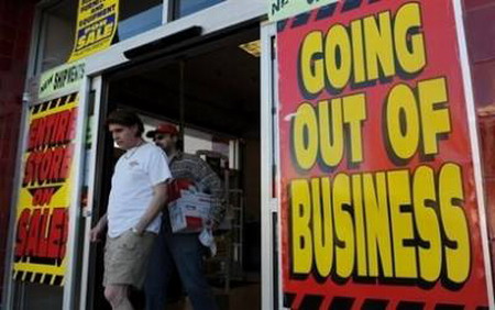 A electrical store holds a going-out-of-business sale in Los Angeles on February 2, 2009. [Agencies]