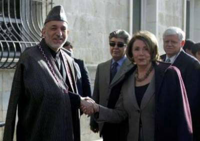 However, officials in Kabul did not say anything about the issues under discussion in the meeting. Pelosi's visit to Afghanistan took place days after US special envoy to Afghanistan and Pakistan Richard Holbrook visited Islamabad and Kabul. |