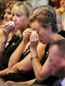 "We rise together in hope from the ashes of despair," Rudd told the ceremony as the Southern Cross constellation featured on the Australian flag was beamed onto the closed roof of the stadium in Melbourne. Rudd expressed sympathy for "unspeakable suffering" endured in the bushfires but said Australia was there to support devastated communities, some virtually wiped off the map by the intensity of the flames. The prime minister pledged "a solemn contract with each of these communities to rebuild: brick by brick, home by home, school by school, church by church, street by street, community by community." "You who suffer are not alone," he said at the ceremony, pledging Australia would fly flags at half-mast every February 7 to remember the victims of "Black Saturday." "This great Australian family here assembled and across the nation today is with you." The memorial coincided with a fresh warning from firefighters that the crisis was not yet over, with more than two dozen communities east of Melbourne warned to be on high alert amid extreme fire conditions. Victoria's Country Fire Authority warned that residents wishing to flee should do so either on Sunday evening or Monday morning -- and in no circumstances attempt a last-minute dash to safety in their cars. "Traffic may become congested," the CFA said. "Being on the roads is dangerous during a fire threat," he said. Thousands of volunteer firefighters are still battling the blazes that have burned out 450,000 hectares (1.1 million acres). They were represented at the memorial service, standing in orange overalls alongside bishops at a ceremony that was televised across the country. Victoria state premier John Brumby said many people were still picking up the pieces after the firestorms killed at least 209 people and destroyed 1,800 homes, "tearing at the very heart of communities." "Monstrous fires... swept across our state, fires that turned day into night, that consumed all before them in an inferno of wind and smoke and flames," he said. "These fires have united all in grief." Mourners wore small silver bells to remember the dead and yellow ribbons as a symbol of their determination to rebuild communities razed in the infernos. To the slow drone of an Aboriginal didgeridoo, survivors remembered each village and hamlet wiped out in the fires. CFA volunteer Misty Dawn Thorose said the service was a chance to take stock after the frenetic activity of recent weeks. Representing Queen Elizabeth II, Princess Anne praised the reaction of communities to the fires. "Individuals and towns have responded with resilience, ingenuity, courage and selflessness to situations that were changing at terrifying speed," she said. "People from around Australia and across the world watched in horror, but with admiration at their response." Governor General Quentin Bryce said the memorial service was also about making a commitment to rebuilding devastated communities. "In time, what was will be restored - no matter how colossal the effort," she said. |