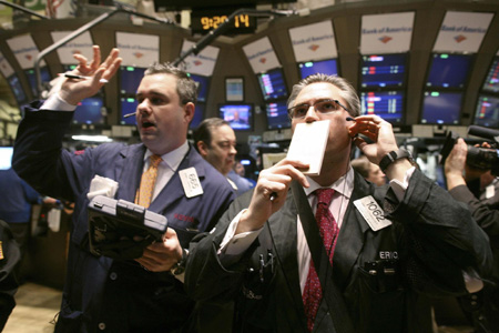 Traders work on the floor of the New York Stock Exchange February 24, 2009. [Agencies]