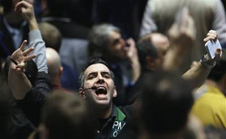Trader Patrick M. Garvey signals in the S&P 500 futures pit at the CME Group in Chicago Monday, March 2, 2009, in Chicago. [Agencies]