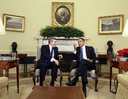 Obama and Brown both called for common principles to bolster the financial regulatory structure. On Afghanistan, where the security situation has been deteriorating, Obama said he would be making a "series of announcements" on the subject before a NATO summit to take place on April 3-4 in Strasbourg after the G20 gathering. 'GLOBAL NEW DEAL' Brown, a former finance minister whose Labour Party is struggling politically, has faced criticism at home for what some see as his failure to tighten up Britain's regulatory structure before the financial crisis. He was the first European leader to visit Obama since the president took office on January 20. Before traveling to Washington, Brown called for a "global New Deal" in which countries would work together to jump-start growth, revamp financial rules and boost funding to the International Monetary Fund. US stock prices this week hit their lowest level in 12 years, in part over anxiety about whether Obama's plans to deal with the banking sector would yield success. The summit of G20 countries will mark Obama's debut as president on the world stage. The group includes developed economies like France and Italy as well as big emerging economies such as China and Brazil. Both Britain and the United States will be eager to show leadership on the global economic crisis but many abroad lay blame for the problems on housing bubbles that were allowed to fester in those two countries. Brown was undaunted in his insistence that countries had to work together. "We've had a global banking failure and it's happened in every part of the world," he said. "We've got to rebuild that financial system. We've got to isolate the bad assets." |