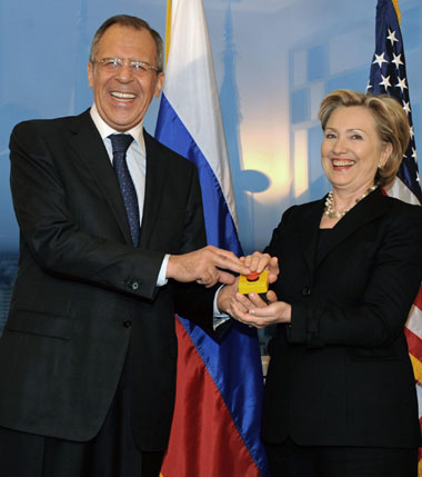 GENEVA – US Secretary of State Hillary Clinton met Russia's foreign minister on Friday, symbolically presenting him with a red "reset" button to improve ties that sank to a post-Cold War low during the Bush administration.