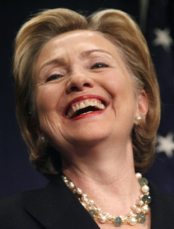 US Secretary of State Hillary Clinton smiles during a news conference with Russia Foreign Minister Sergei Lavrov after a bilateral meeting in Geneva March 6, 2009. [Agencies]