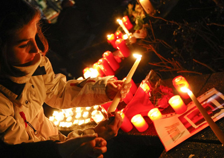 A girl lights a candle at the Albertville-Realschule school where a shooting incident took place in Winnenden March 11, 2009. A 17-year old gunman went on a shooting spree at his former secondary school, the Albertville-Realschule in Winnenden in southwest Germany on Wednesday, killing up to 15 people before dying himself in a shootout with police at the car dealer, authorities said. [Agencies]