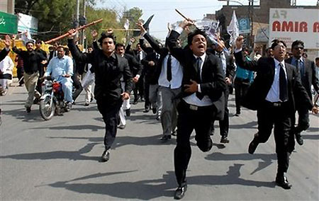 The protesters' main demand is the reinstatement of former Supreme Court chief justice Iftikhar Chaudhry, who was dismissed in 2007 by then president and army chief Pervez Musharraf. Zardari, widower of former prime minister Benazir Bhutto, has refused to reinstate the judge. A senior official in Zardari's party said on Saturday the president was refusing to cave in to pressure from Sharif and his supporters in the media. "What Nawaz Sharif is offering is a future of overturning the electoral mandate by generating a mob," said the official, who declined to be identified. "Let him bring a resolution to parliament and see if he can get a majority." The official also dismissed talk of any "erosion" in support from the United States or the army. US Secretary of State Hillary Clinton spoke by telephone to Zardari and the Sharifs on Saturday.