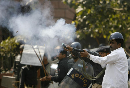 Updated: 2009-03-15 20:51 ISLAMABAD -- Pakistan police clashed with the protesters in eastern Pakistani city of Lahore on Sunday as the prevailing political crisis is worsening in the country.