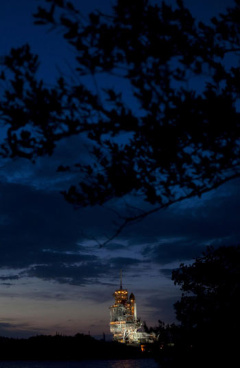 Space shuttle Discovery sits shrouded by the rotating service structure on launch pad 39A at the Kennedy Space Center in Cape Canaveral, Florida 2009. [Agencies]