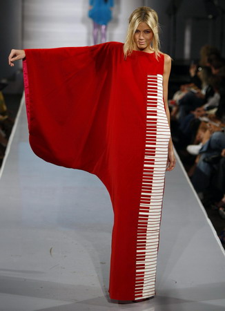 A model displays a creation designed by Agatha Ruiz De La Prada of Spain at Miami Fashion Week in Florida March 22, 2009.[Agencies]