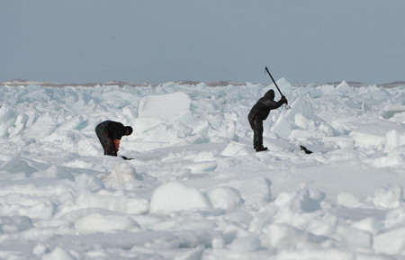 Sealers begin hunting in the Gulf of St. Lawrence during the 2009 Canadian commercial seal hunt in this International Fund for Animal Welfare (IFAW) handout March 24, 2009. [Agencies]