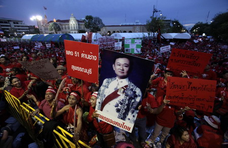About 3,000 demonstrators remained on the streets around the seat of government Friday as leaders took to the stage to denounce the government in the midday heat. More were expected to join the throng in the evening to hear Thaksin, currently in self-imposed exile, make a televised broadcast to the rally from a secret location abroad. The protest is the latest episode in Thailand's protracted political turmoil which last year saw months of protests by Thaksin's opponents. Abhisit said he does not expect the protests to turn violent. Other demonstrations against the current government have been generally peaceful. "Whether to resign or not resign is a political matter within the system," Abhisit told reporters Friday at his Democrat Party's headquarters. "Right now, the situation remains normal." Abhisit went later to Parliament. It was not clear if he would try to enter Government House later in the day. Deputy Prime Minister Suthep Thuaksuban said security officials will assess the situation before Abhisit and his Cabinet members enter the compound. Thaksin's supporters are using the same people-power method as their rivals, who last year besieged the Government House for three months and occupied Bangkok's two main airports for one week. The "red-shirts," as the pro-Thaksin supporters are commonly known because of their favored color, have vowed to remain outside Government House at least through the weekend. But they said they would not break into the compound as their rivals did. "We will protest until the illegitimate government is gone. We have to stop them from causing more damage to Thai democracy," said a protest leader, Nattawut Sai-kua. "We will stay for as long as we need to get the job done." Abhisit was voted in by Parliament in December after a court dissolved the party leading the previous government, which was packed with Thaksin's allies. Protesters say the court decisions were political and biased against the former leader's allies. Thaksin, who remains popular in the countryside, fled into exile last year and has been convicted in absentia of violating a conflict of interest law. He made a brief phone call that was broadcast to the rally Thursday night. He said he was calling from Africa. "I want to thank you, brothers and sisters, who are here to defend democracy," he said to loud cheers from protesters. "Without democracy, there will never be progress." He was ousted in a 2006 military coup for alleged corruption and abuse of power. |