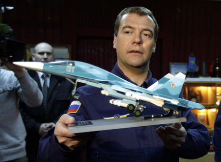 Russia's President Dmitry Medvedev visits Kubinka airbase outside Moscow, March 28, 2009. [Agencies]