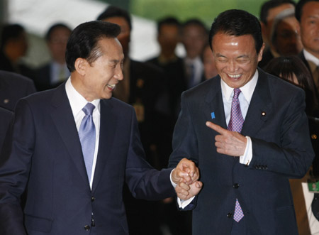 ROK President Lee Myung-bak spent the day in Tokyo for meetings with Japanese Prime Minister Taro Aso - a month after Pyongyang's underground nuclear test ratcheted up tensions in the region. The leaders, who spoke to reporters at Aso's residence, said they also discussed how to foster stronger economic cooperation. Aso said initial negotiations aimed at eventually forming a free trade agreement would be held on July 1.
