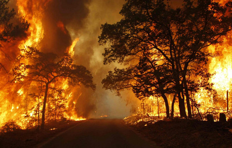 ![A cloud of smoke rises from a wildfire as it burns out of control near Bastrop, Texas September 5, 2011. [Photo/Agencies] 2 dead in Texas wildfires, homes destroyed](../../images/attachement/jpg/site1/20110906/0013729e48090fcfbaec04.jpg)