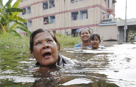 Residents walk through a flooded street in Bangkok Nov 5, 2011. [Photo/Agencies]