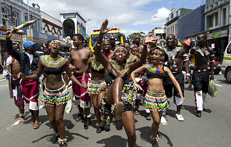 Traditional Zulu women participate in a carnival procession during a Pre-COP17 Climate Change Awareness event through the streets of Durban, Nov 25, 2011.