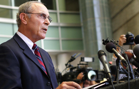 US Attorney John S. Leonardo speaks during a news conference outside the US Federal Courthouse after a court hearing for Tuscon shooting rampage suspect Jared Loughner in Tucson, Arizona August 7, 2012.??[Photo/Agencies] |