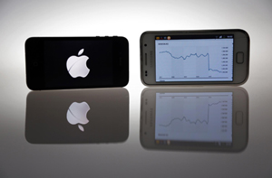 An Apple iPhone 4s and Samsung Galaxy S are seen in this illustration photo in Berlin Aug 27, 2012. [Photo/Agencies] |