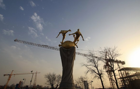 View of Et Si? Installation by artist Daniel Knipper during the rehearsal for the "Festival of Lights in central Lyon late in the night Dec 5, 2012. The Festival of Lights, with designers from all over the world, is one of Lyon's most famous festivals to date and will run from Dec 6 to Dec 9, 2012. [Photo/Agencies]