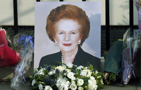 "It is with great sadness that Mark and Carol Thatcher announced that their mother Baroness Thatcher died peacefully following a stroke this morning." More Fond farewells for 'Iron Lady' I was eating lunch when I learned that former British prime minister Margaret Thatcher had passed away. "What a pity!" all my colleagues at the lunch table said with one voice. I rushed to my desk and posted the news on my Sina Weibo account. More |