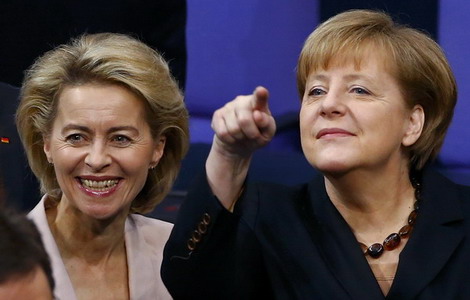 German Chancellor Angela Merkel receives her certificate of appointment from President Joachim Gauck after being re-elected as Chancellor, during a ceremony in the Bellevue Palace in Berlin Dec 17, 2013. [Photo/Agencies]