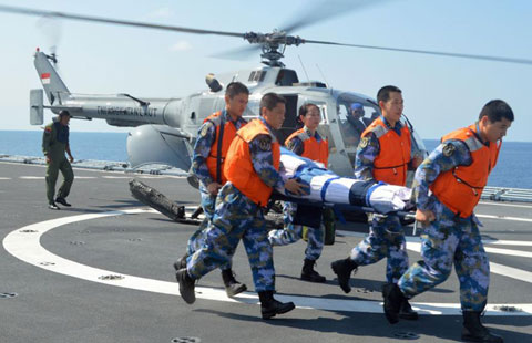 A Russian serviceman directs Russian tanks after their arrival in Crimea in the settlement of Gvardeiskoye near the Crimean city of Simferopol March 31, 2014. Russia is withdrawing a motorized infantry battalion from a region near Ukraine's eastern border, the Russian Defence Ministry was quoted as saying by state news agencies on Monday. [Photo/Agencies] |