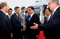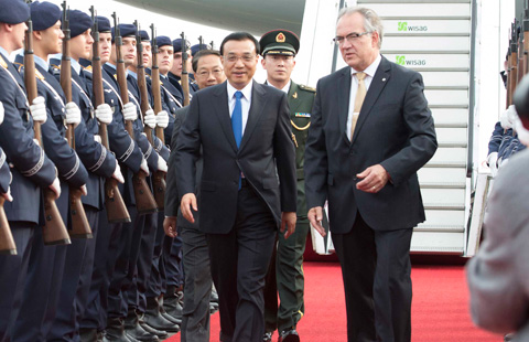 Premier Li Keqiang arrived at Berlin on Thursday afternoon, the first leg of his three-country trip that will last until Oct 18.