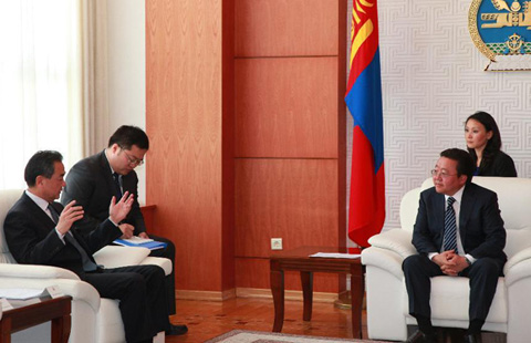 Mongolian President Tsakhiagiin Elbegdorj held talks with visiting Chinese Foreign Minister Wang Yi on Wednesday, with both sides vowing to promote bilateral ties to a new level.