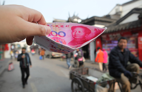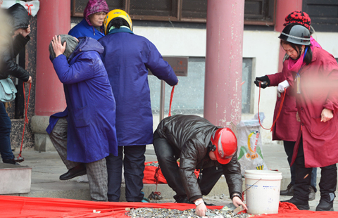 Pieces of ice flow over the Canadian Horseshoe Falls in Niagara Falls, Ontario, Canada, Feb 19, 2015. [Photo/IC] |