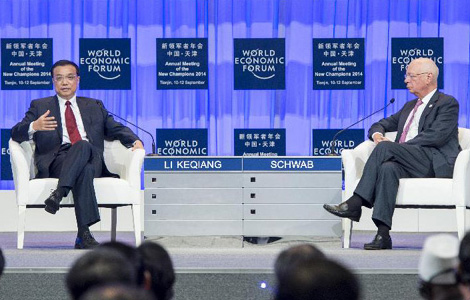 Klaus Schwab has long been optimistic that China is on the right path. But as China enters what many are calling a new normal era of medium-paced growth, the 76-year-old founder of the World Economic Forum thinks Premier Li Keqiang needs to let the world know that China will continue to drive the global economy.